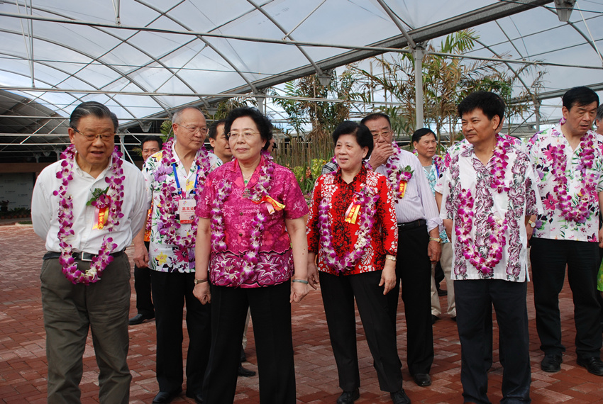 原國家林業(yè)局副局長、黨組副書記李育才、中國花卉協(xié)會會長江澤慧等領導蒞臨三亞蘭花世界(2010年1月10日)